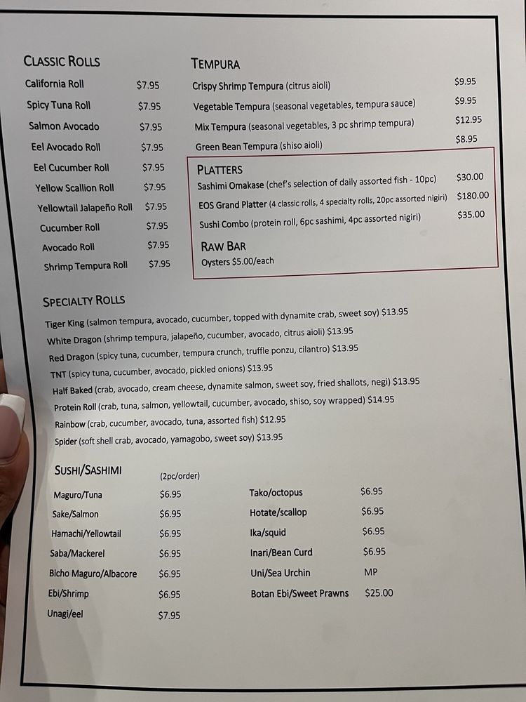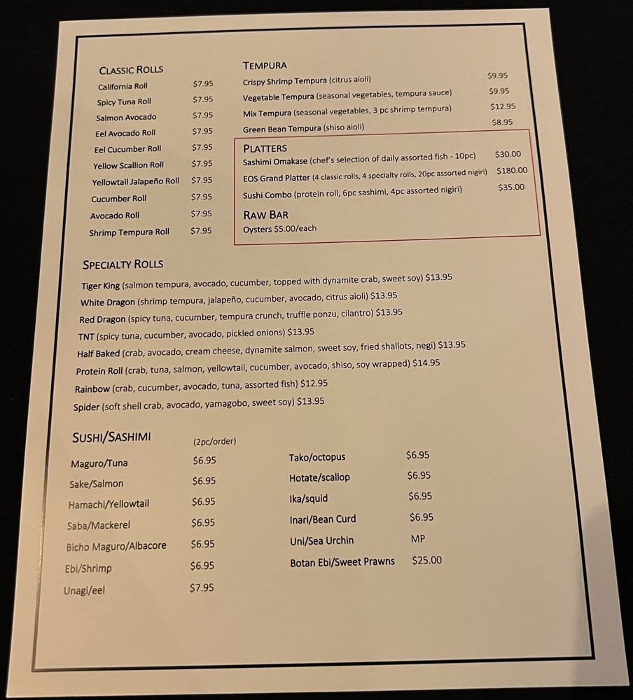 EOS Sushi Menu